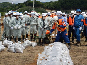 - 土のう製作と積み土のう工法についての説明(豊岡消防団)