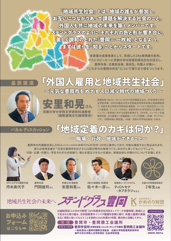 豊岡市内の企業を取材した「外国人雇用事例集」を配布し、建設・旅館・介護・製造など多様な現場から、受け入れから定着までの「あり方」や「向き合い方」を考えるヒントを共有します。