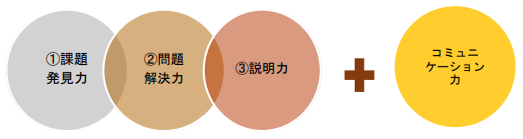 自律的に考え、行動する職員であるために、すべての職員が磨くべき基礎力を(1)課題発見力、 (2)問題解決力、(3)説明力の3つの力とコミュニケーション力と位置づけています。 3つの力を磨くことで、一人ひとりの職員が持つ個性や能力、資質等を最大限に生かすこと ができると考えています。また、コミュニケーション力はこれら3つの力のすべてに関連し、 仕事を進めていくうえで必須であると考えています。