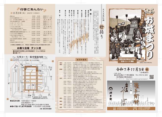 2025年11月3日(月曜日・祝日)に、出石城跡周辺で「第53回出石お城まつり」を開催します。