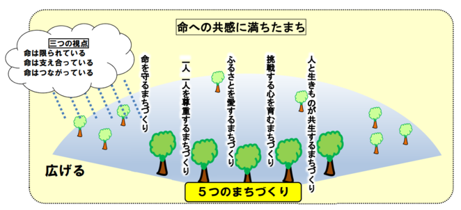 まちづくりの長期目標は「命への共感に満ちたまち」